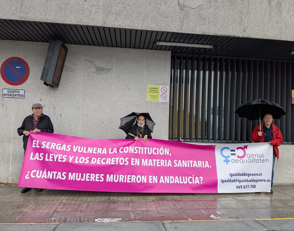 - Una vez más la Asociación española por la Igualdad de género «Genus Aequalitatem» ha salido a la calle para condenar una injusticia social. En esta ocasión nos hemos concentrado delante de la entrada principal del CHUAC de A Coruña para protestar por las injustificadas tardanzas en los llamamientos para operaciones y para consultas de médicas/os especialistas. La mala gestión de las listas por parte del SERGAS está ocasionando graves perjuicios para la población gallega, cada vez más mayor, cada vez más con más personas dependientes, cada vez más necesitada de atención médica especializada.