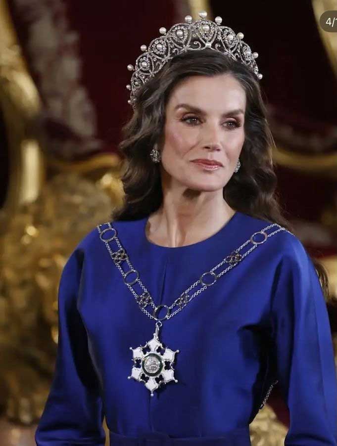 • En la Asociación española por la Igualdad de género queremos señalar el simbolismo de estas joyas que tan bien luce doña Letizia en los actos públicos a los que asisten presidentes y jefes del Estado de otros países. Así vemos estos días como la Reina consorte saca las mejores joyas de su joyero con motivo de la visita oficial del presidente de Alemania y su esposa. Una Reina es una Reina.